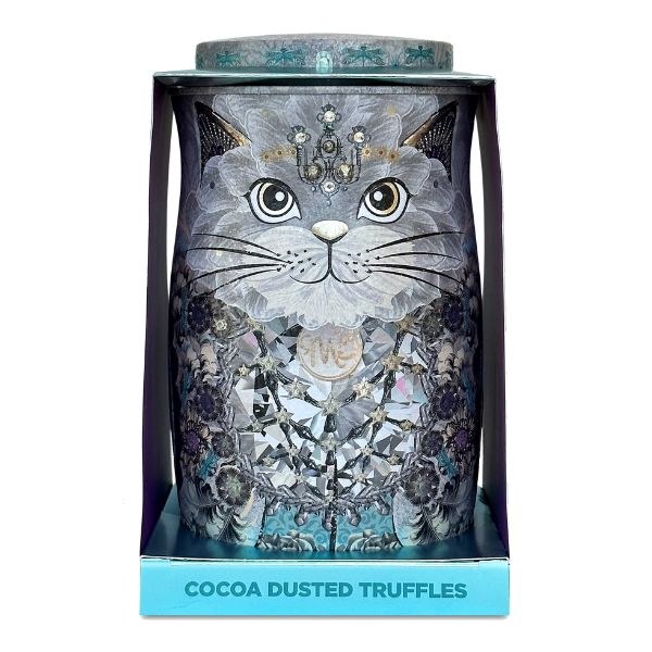 Monty Bojangles Diamond Empress Cat Tin is a stunningly designed gift tin containing 4 remarkable flavours of the utterly delightful Monty Bojangles Cocoa Dusted Chocolate Truffles